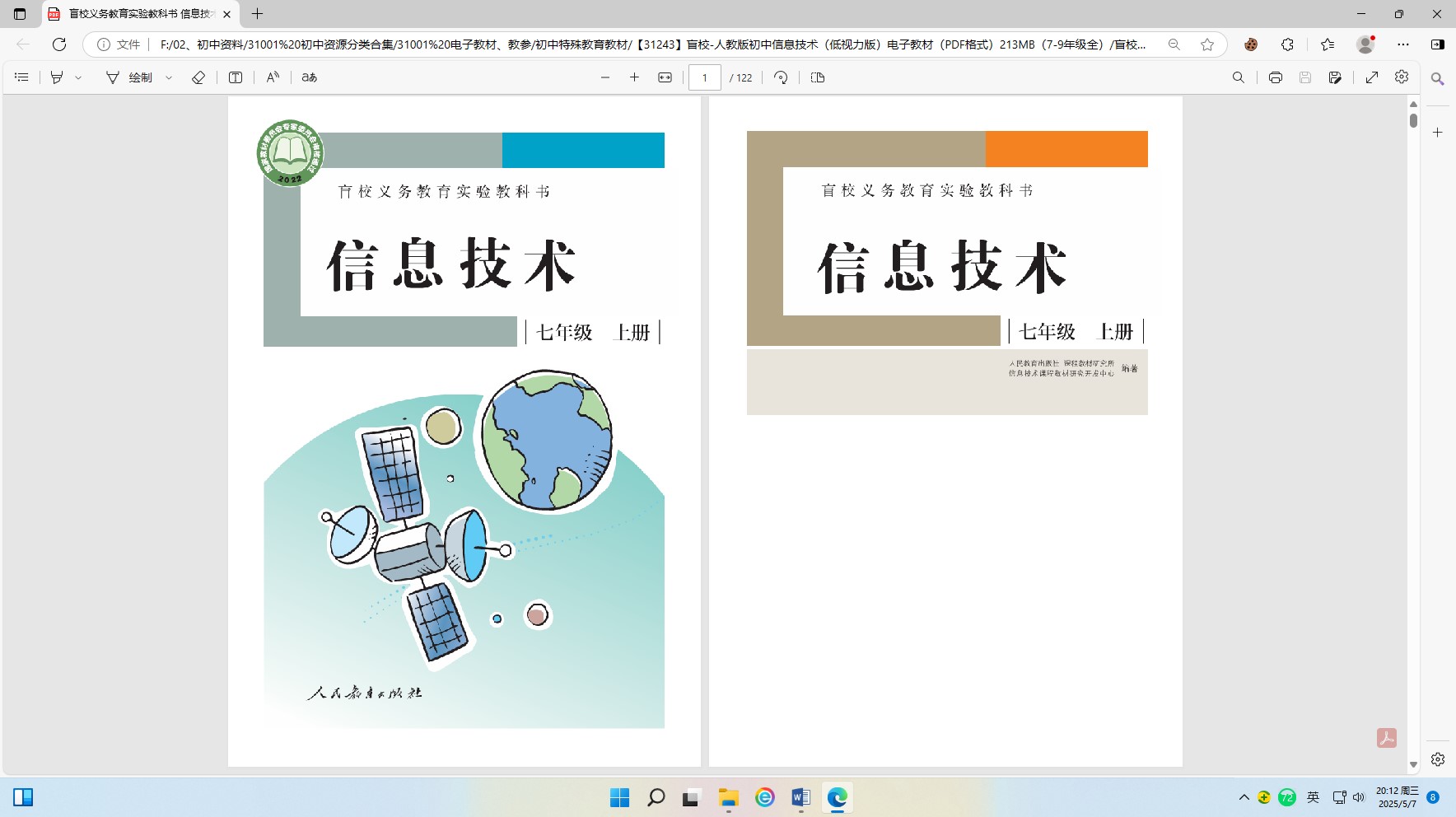 【31243】盲校-人教版初中信息技术(低视力版)电子教材(PDF格式)213MB(7-9年级全)